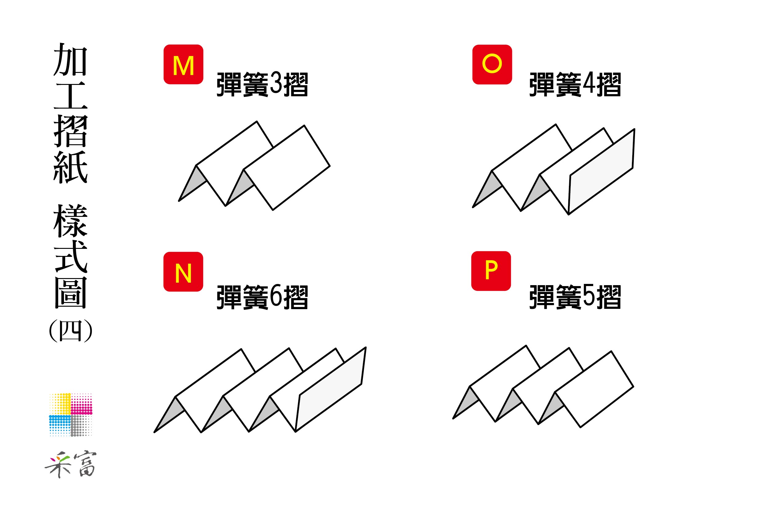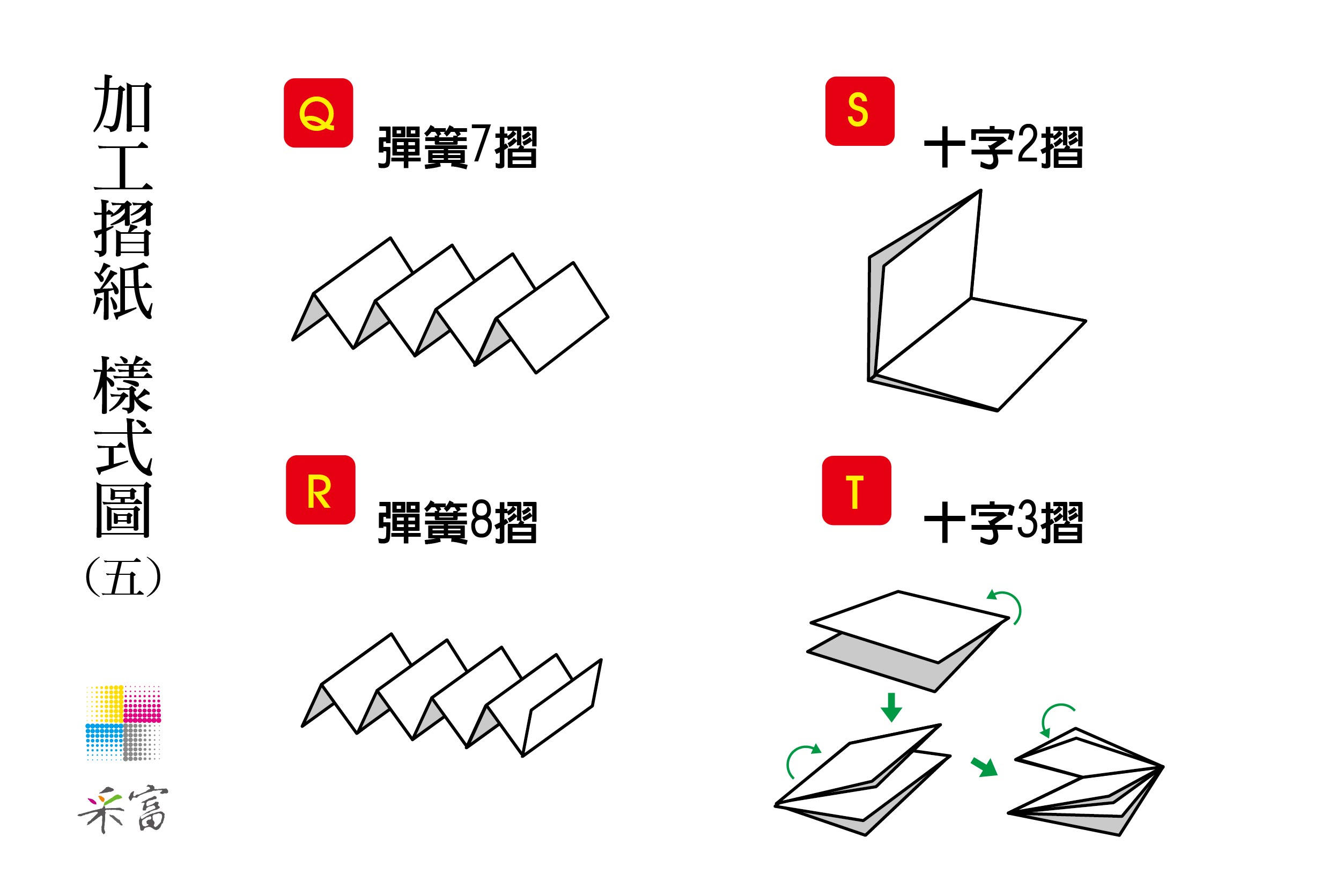 3. 五摺以上的摺紙,因難度較高,故耗損會增加,印刷時需多加放數6%以上。