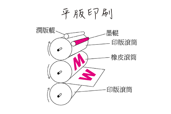 所謂平版印刷,就是平版上不著墨的空白部分和著墨的圖文部分同處在一個平面上。