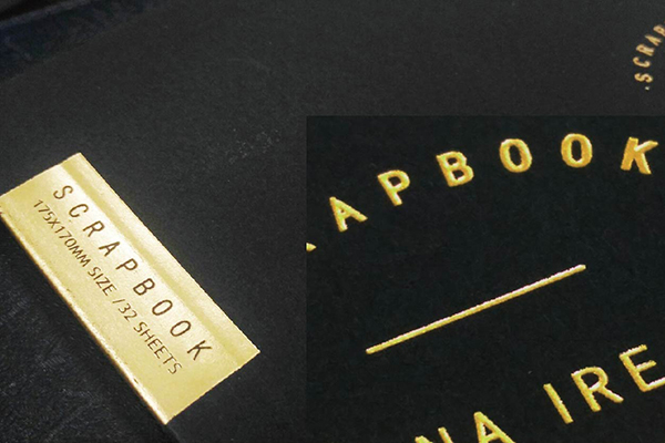 將金箔加熱轉印到紙上,屬於印刷後加工,需先製作燙金用的鋅版,工期較久,費用跟燙印面積有關,以每張計價,適合少量印製需求。