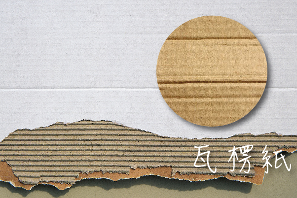 瓦楞紙板的構成是由「裱面紙」與「芯紙」兩種原紙裱合而成,如圖所示。